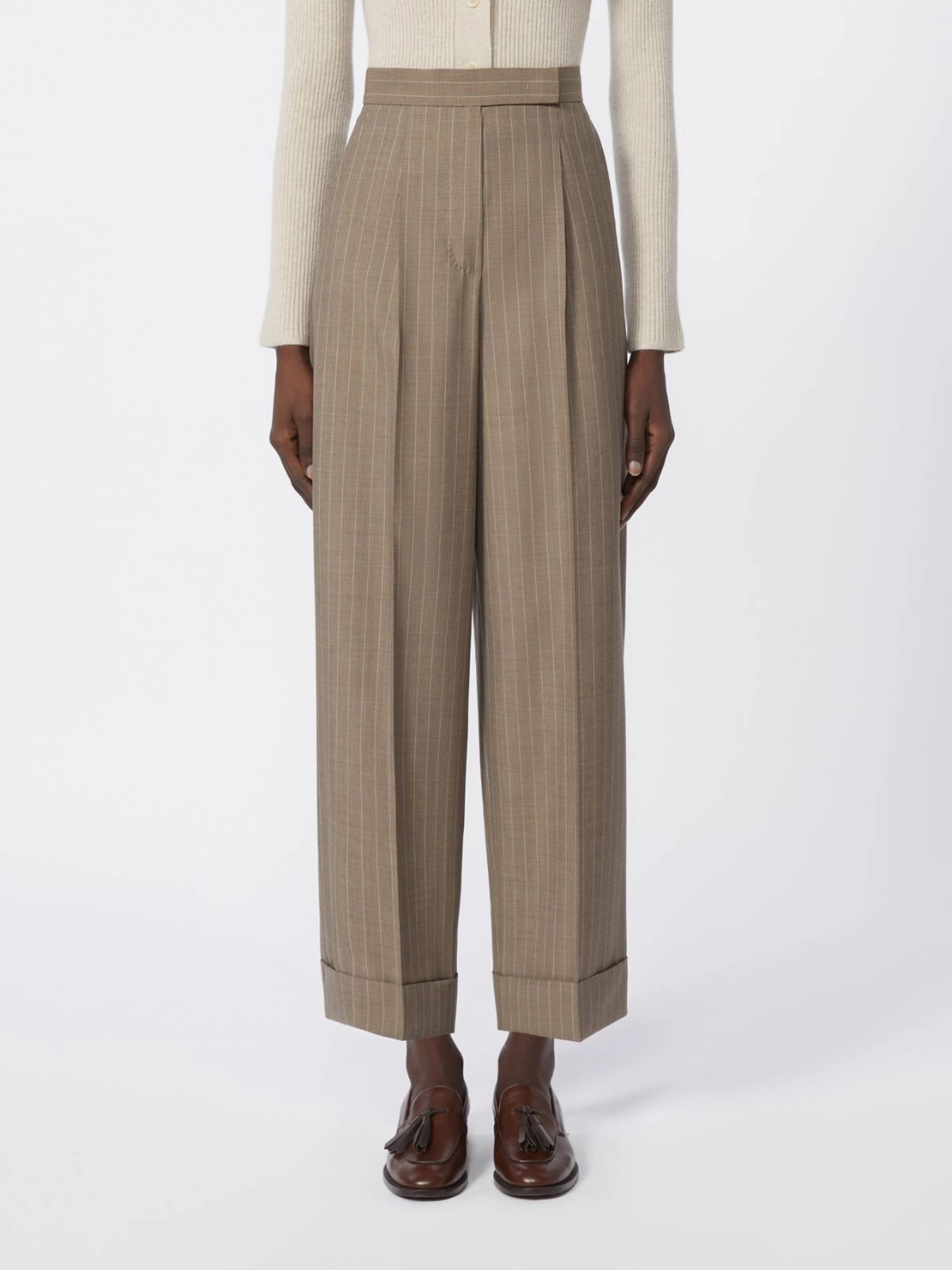 Pantalón de lana con motivo de raya diplomática - Avellana