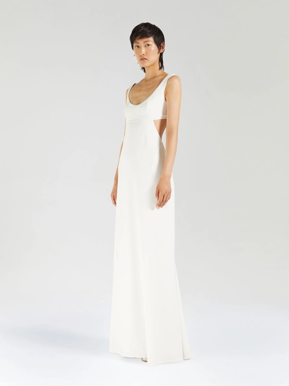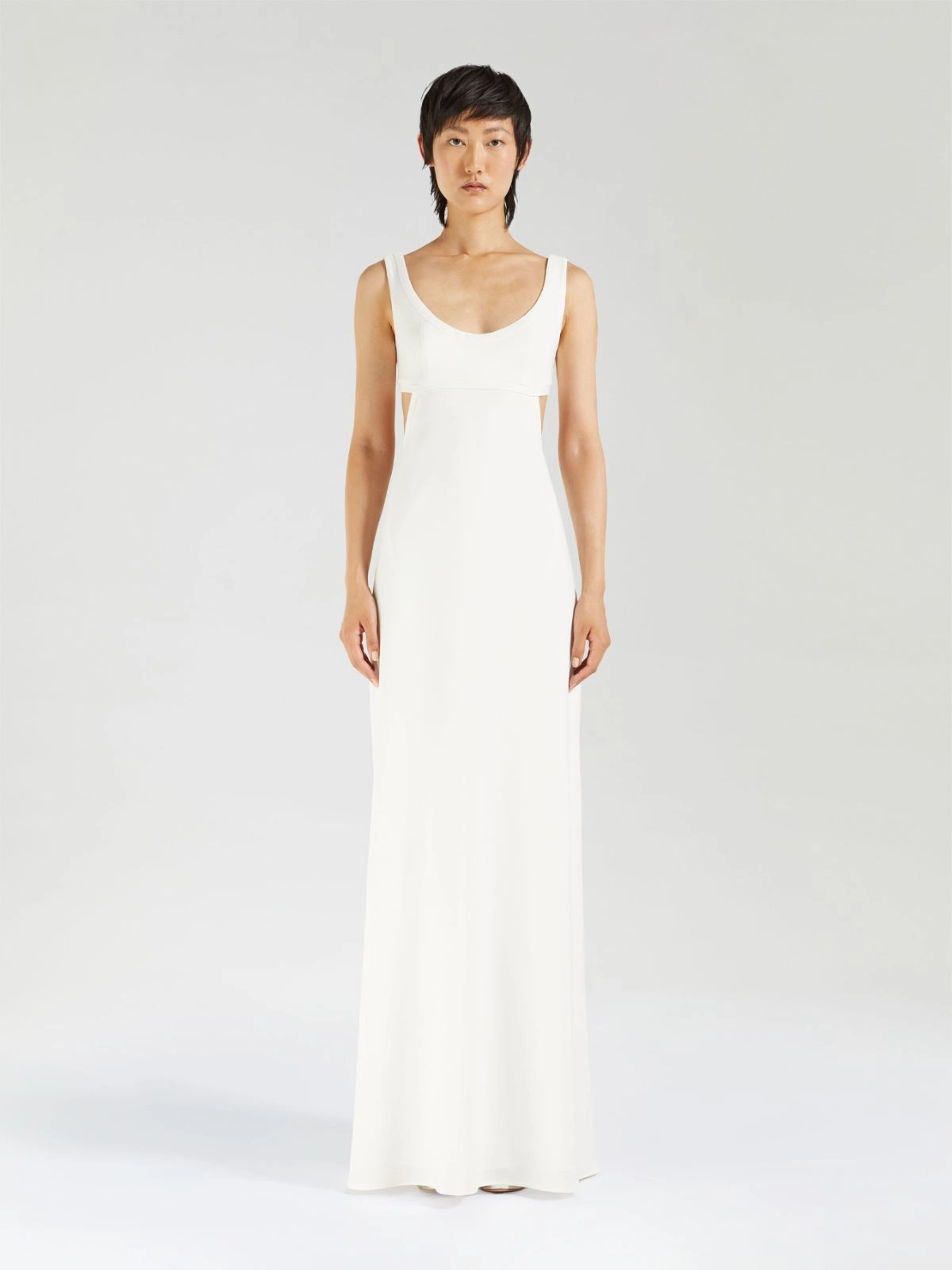 - Corte entallado con falda ligeramente sirena.