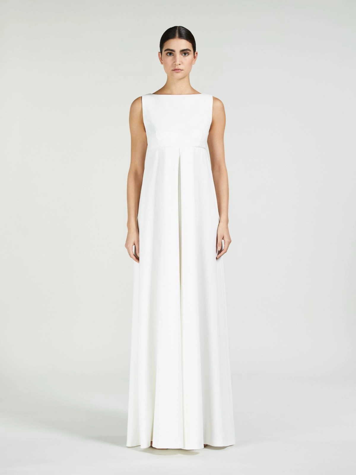 Mono sin mangas caracterizado por el pliegue pronunciado en la parte central, delantera y posterior, que añade volumen y movimiento al bajo.